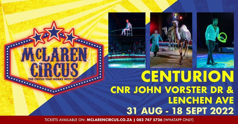 McLaren Circus Centurion 2025 Circus site Centurion August 31, 2025, Be sure to book your tickets early, as shows will #sellout tickets on our website: